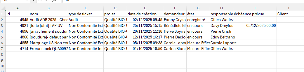 ProjeQtOr free project management software - Extract ticket CSV - ProjeQtOr
