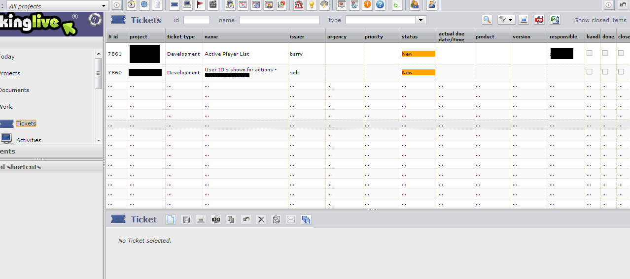 ProjeQtOr free project management software - All projects- Ticket view not working in 3.4.0 for some users intermittantly - ProjeQtOr