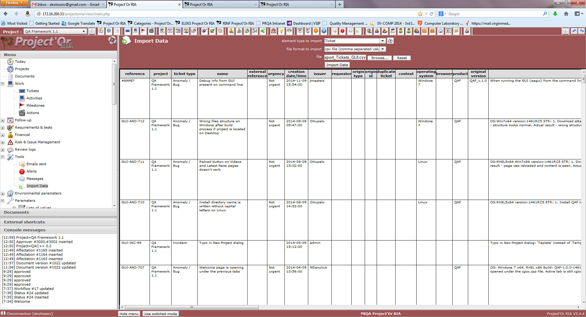 I have exported tickets from another projectorria instance, removed IDs.