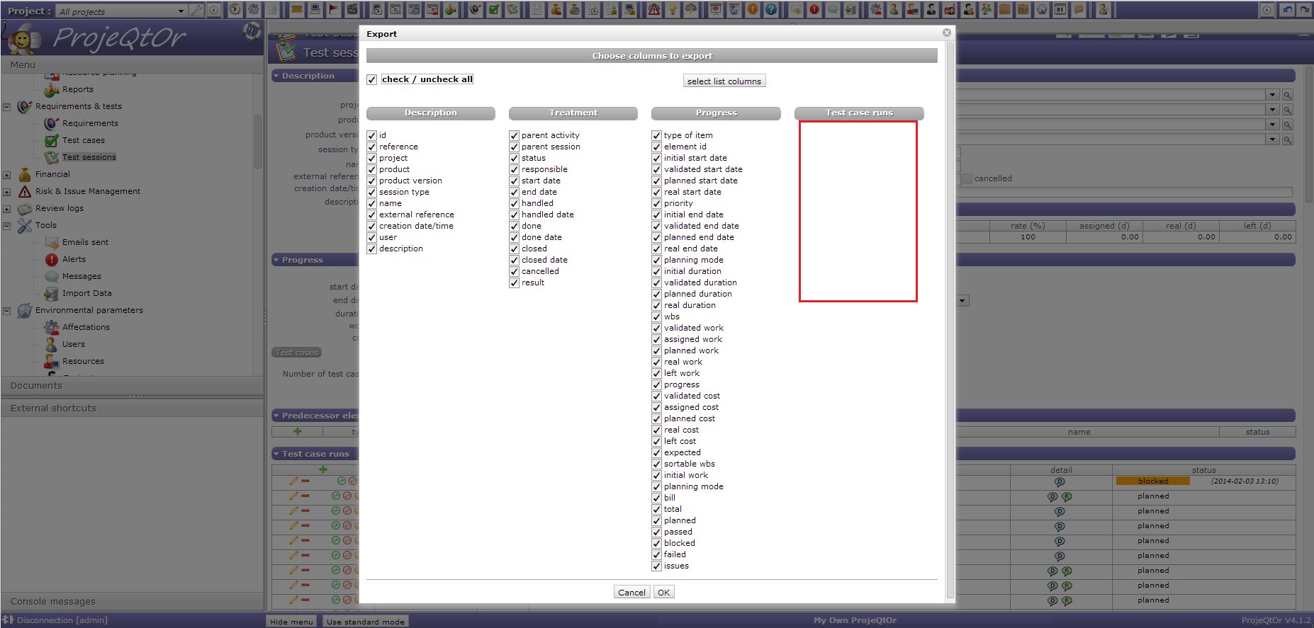 ProjeQtOr free project management software - Not possible to export "test case run" from projeqtor to .CSV - ProjeQtOr
