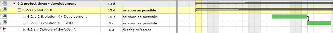 Parent reduced : I meen that, in Gantt, you will see parent activity size decrease according to status of dependant activity, even if you ask for viewing closed ones.