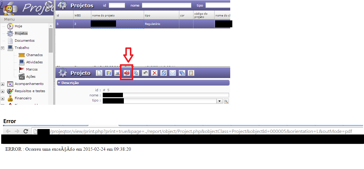 - Exporting project record to PDF is not working anymore. it seems to happen only on project screen, since other screens are working. Please see attached files "PDF Export error" and also the log file. It says there's an "ERROR n°4 : HTML code invalid, the tags are not closed in an orderly fashion.Status : Array"