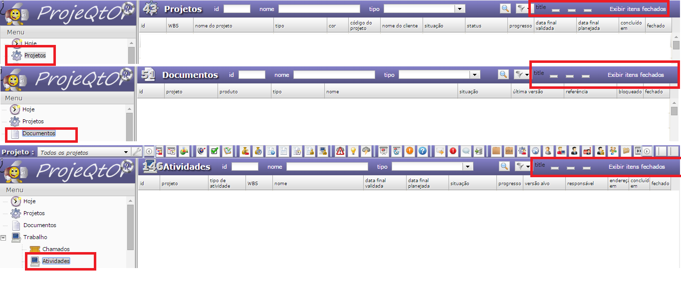 - Menu buttons do not appear (not even work when clicked) in screens project, actions, activities, etc (all screens). Please see attached file "menu buttons error".