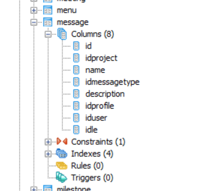 However, in the attachment messages_pgsql.png (using pgAdmin III) you can see the structure of the table messages in the production server which uses postgres. There are only 8 columns and the showOnLogin column is missing.
