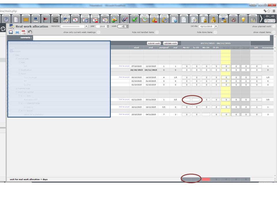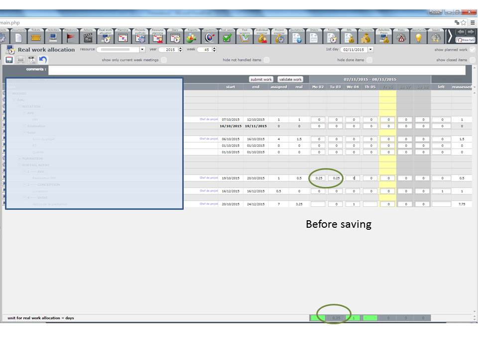 If I go to another screen and come back on my Real-work allocation, Projeqtor didn't display my different inputed values and the sum is also not displayed. (see Diapositive 2)