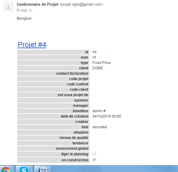 My goal is eliminated table in gray in the body of the email sent and summarizing the characteristic of the object of the email element therefore how to make this action even though with a code change if possible tell me what code (in what file and what repertoire projeqtor) and what values I must change the parameter and how