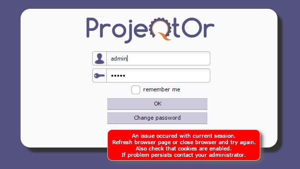 If problem persists, check for error in projeqtor log file, in apache error log file and in browser console.