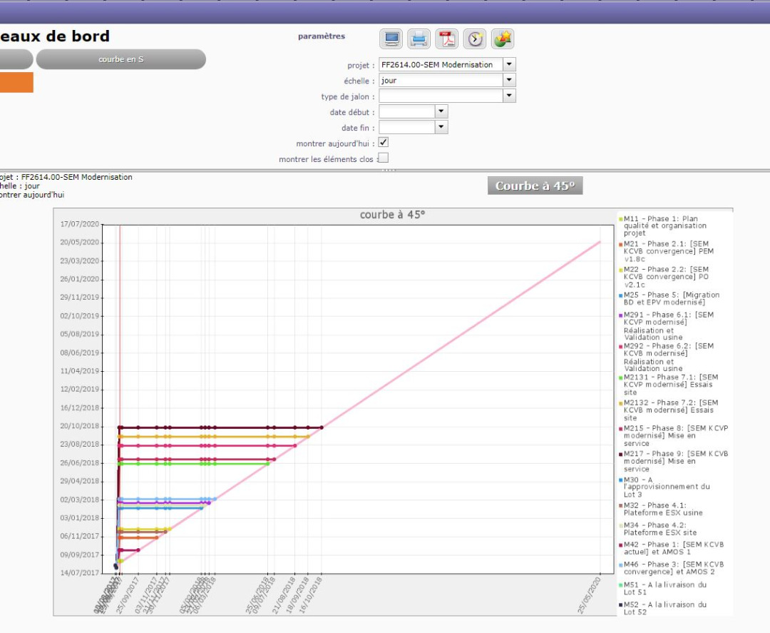 If we use on the project the day filter, it is also unreadable. (look the attached file). In the X axe , dates are unreadable..(when there are lot of milestones).