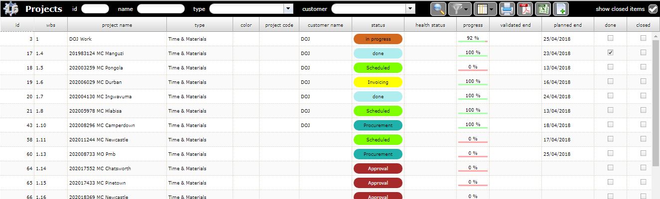ProjeQtOr free project management software - Viewing closed projects (checkbox) - ProjeQtOr