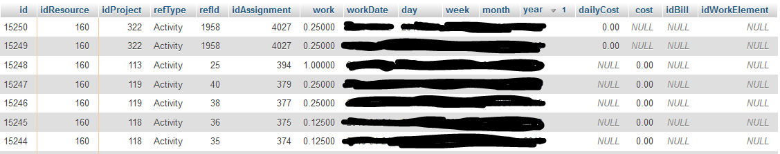 Work isn't enter through Ticket (we use timesheet screen only). Also in DataBase every line of work got Null idWorkElement