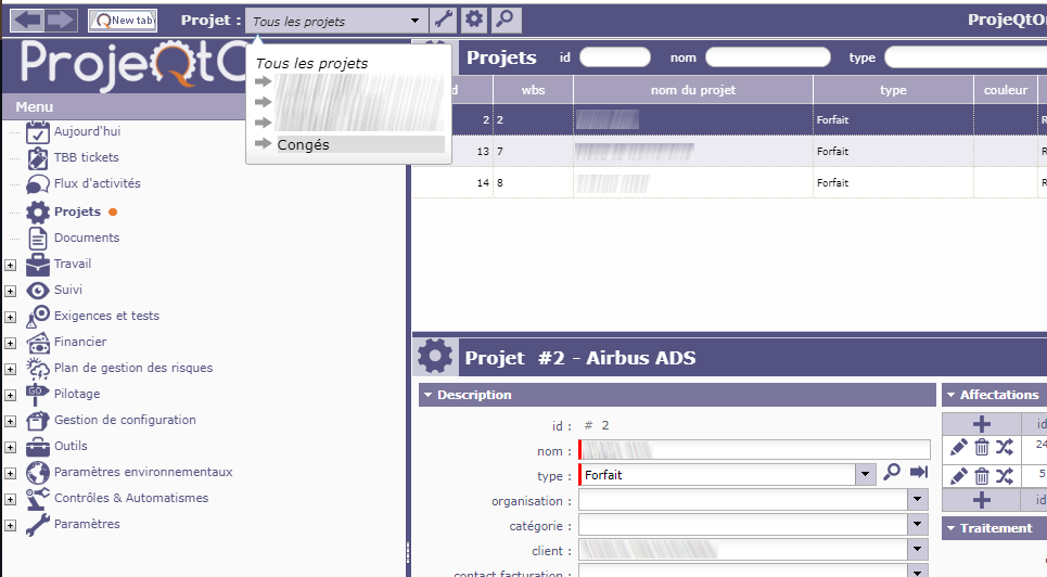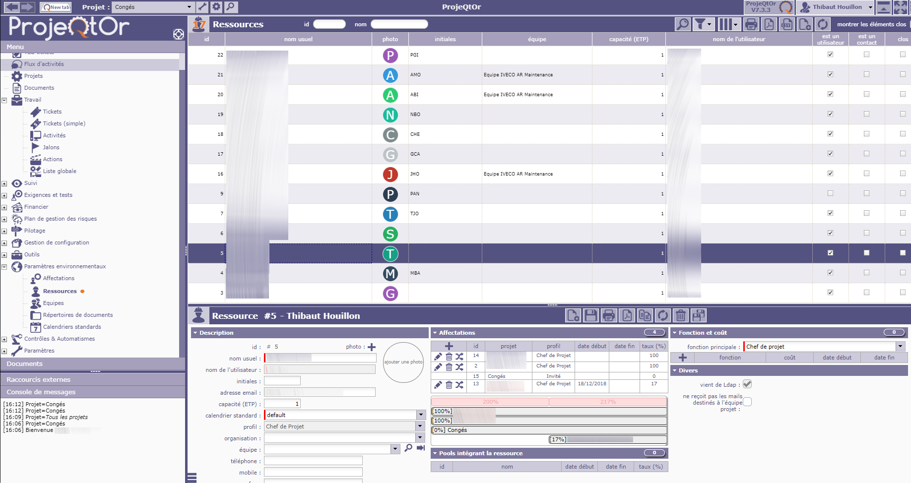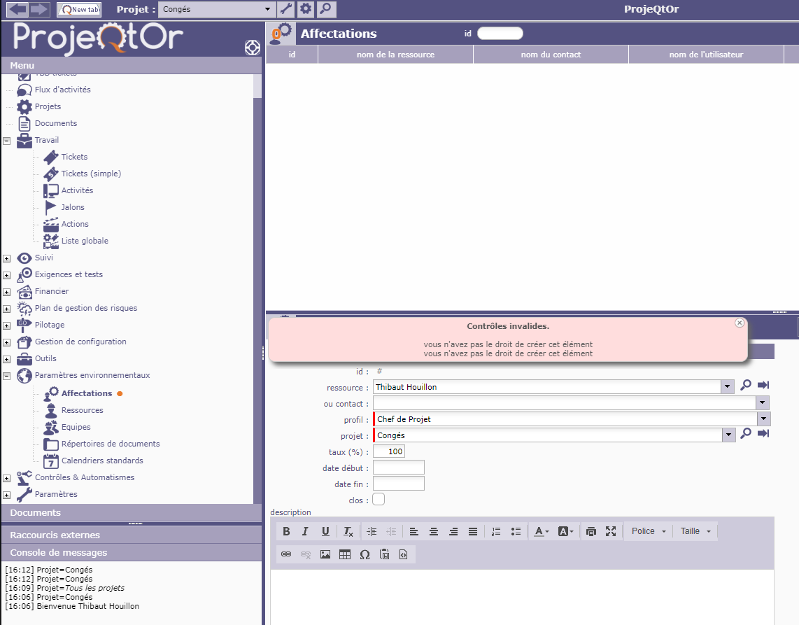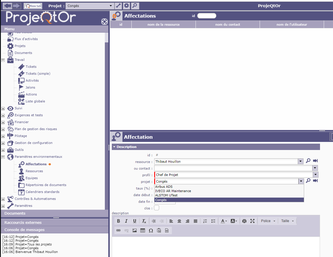 My project is called 'Congés' and i was Project Manager (i'm the project creator)