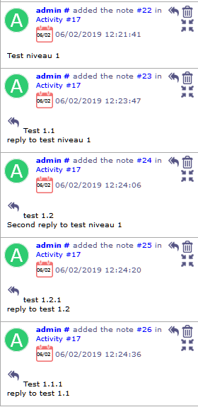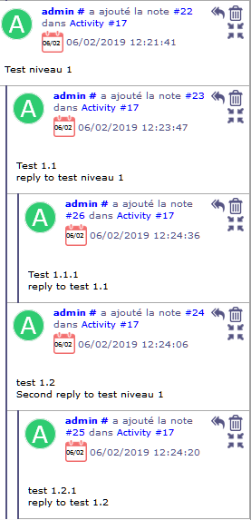 in V7.4.0, the new functionnality "reply to " for notes does show hierarchical structure as needed.