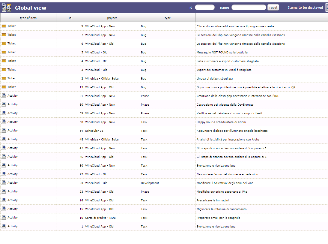 On the other side, on "Work > Global View" I get the whole list of tickets, activities, milestones and actions on a single view but not as a tree list.