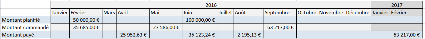 - So, we have only make an ORDER, but, in case of manpower purchasing, you can't expect all work made in one time, so, you need to keep trace of several real expense made (ie : I put a order for 100 days work, it cost 100 000 € for the next 4 months, but I really paid 25 000 € a month, so I need 4 payement terms - like in SectionExpenseDetail).