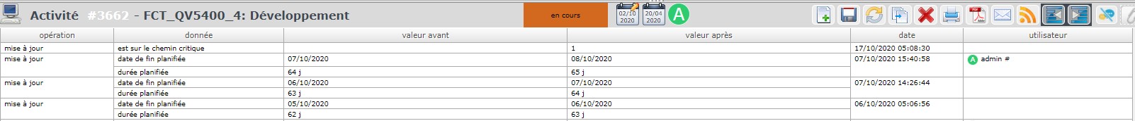 We have set up alerts relating to excess loads, but would like to be able to access the evolution of this drift over time. Indeed, when the thresholds are exceeded, there are no more alerts and the history of a task does not contain any record relating to the update of the remainder (or re-evaluated) of a task. Would you have something to suggest to us in order to trace the history of the remaining updates submitted by the person in charge via the imputations (For example: J1 +0.25, J5: +0.5 ...)