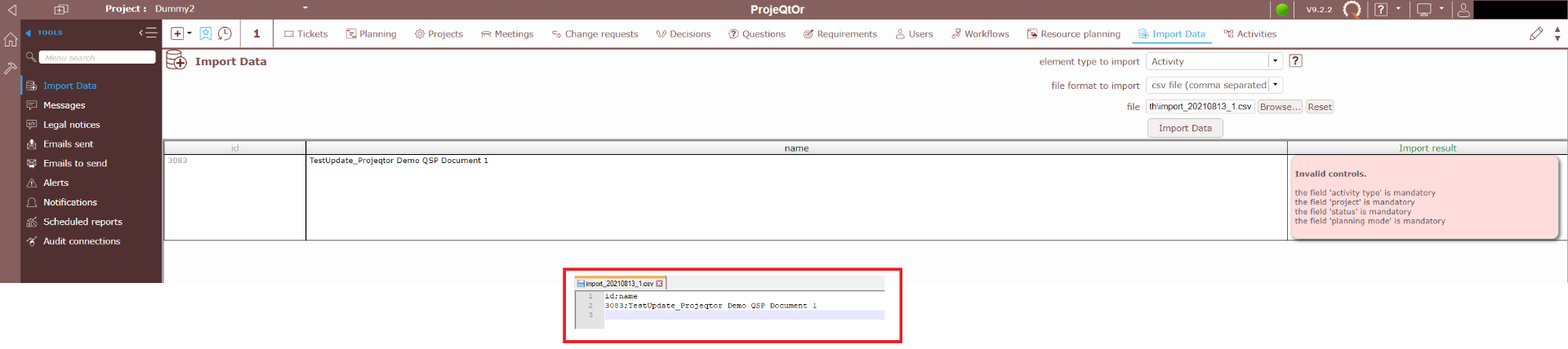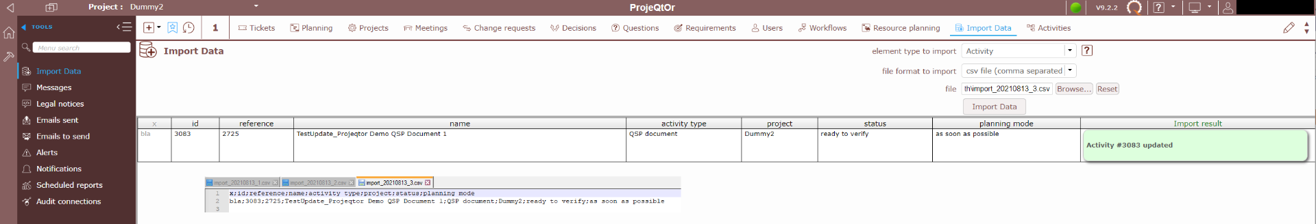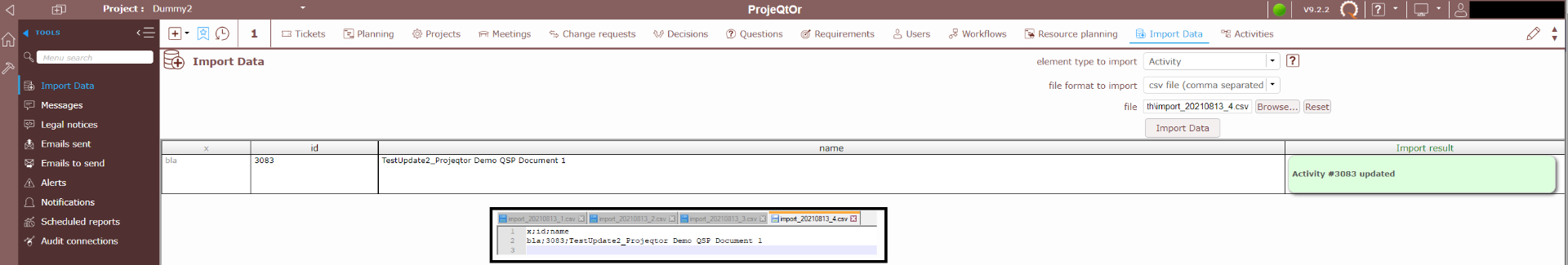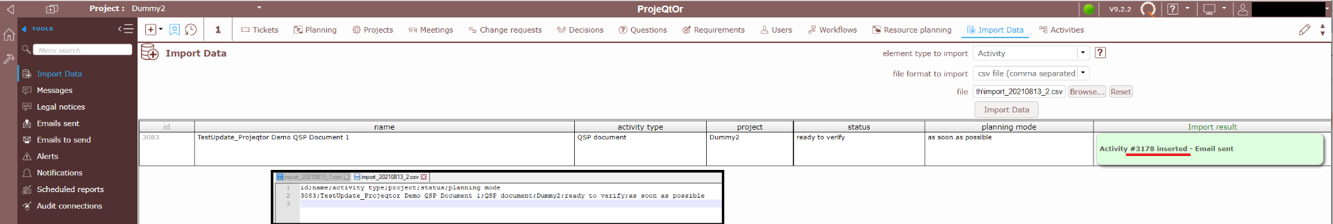 ProjeQtOr free project management software - import csv with activity name change? - ProjeQtOr