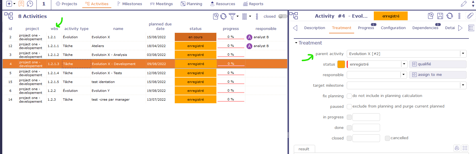Just to be sure, did you set a parent activity for your elements ? How does your Work Breakdown Structure (wbs) look like in Activities screen ? It should reflect your hierarchy.