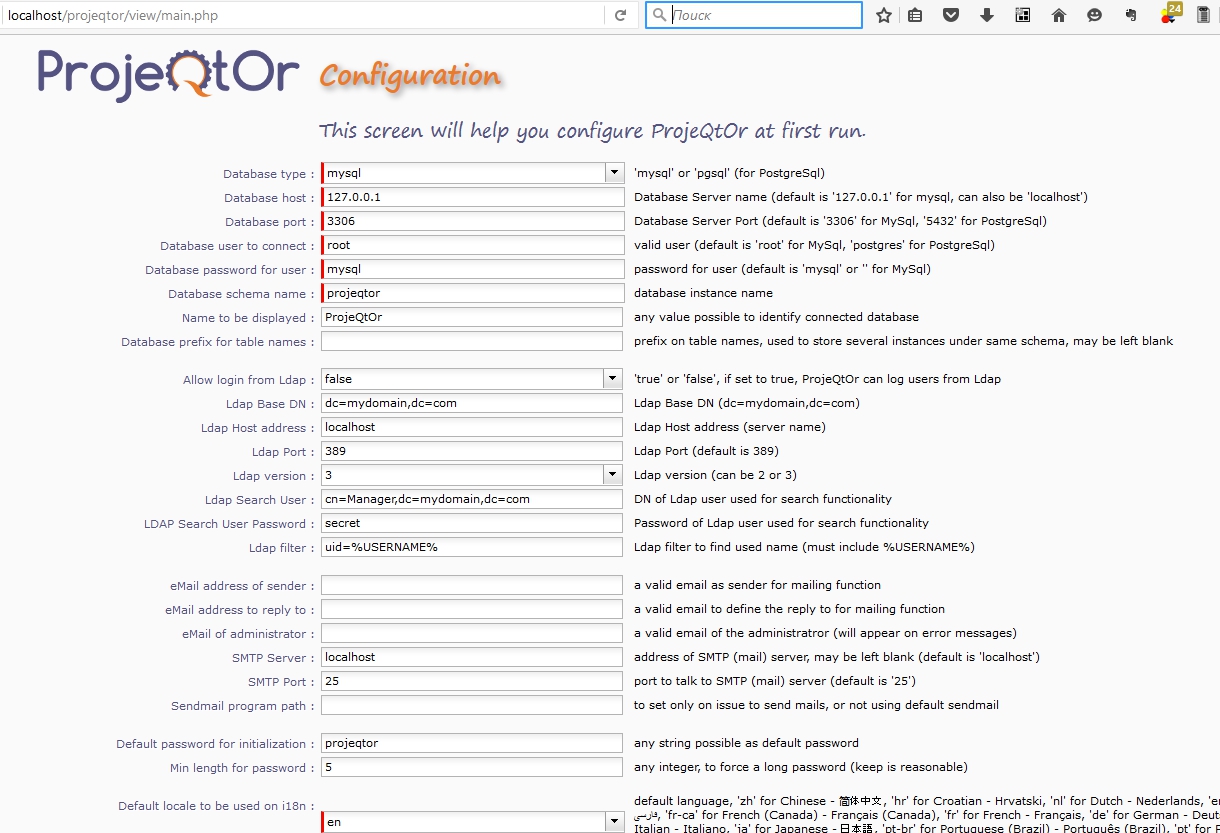 I not defined a password in projeqtor I launch localhost then I see this page http://localhost/projeqtor/view/main.php