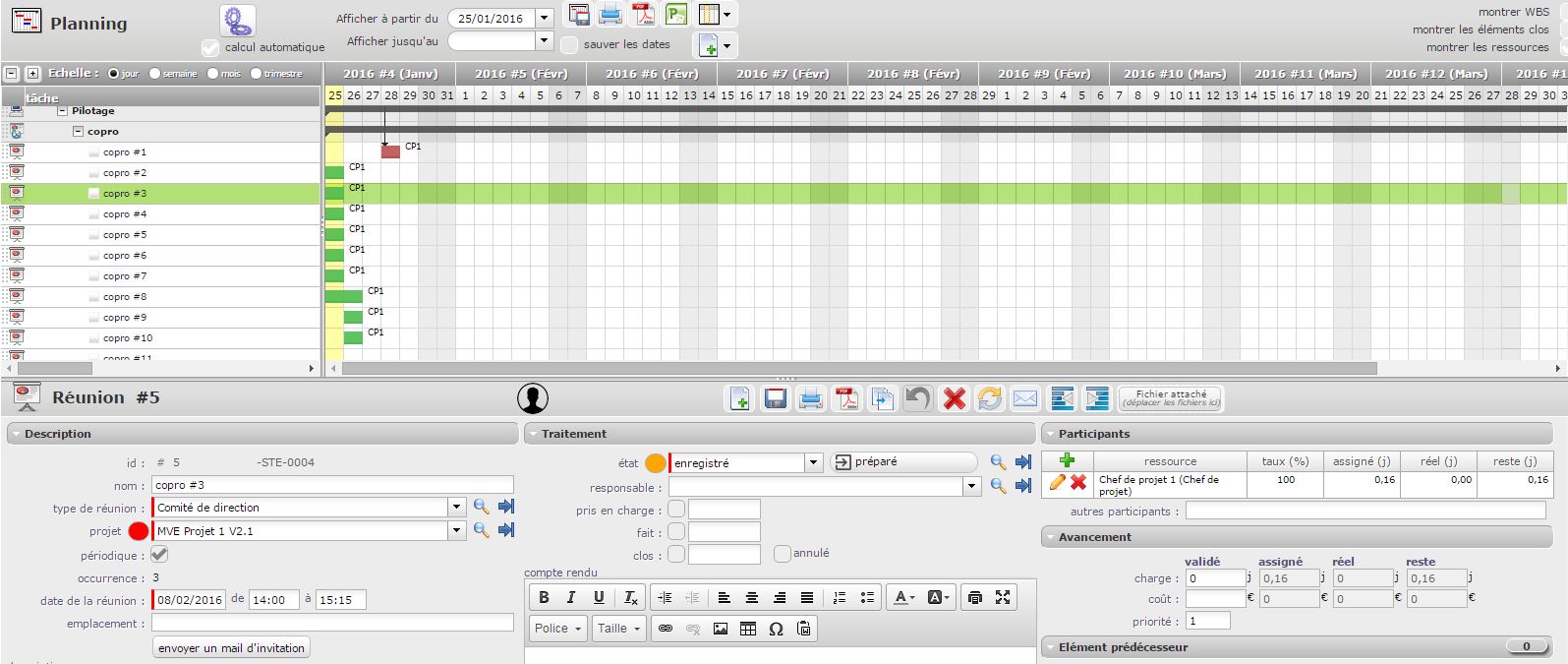 ProjeQtOr free project management software - Periodic meetings planification - ProjeQtOr