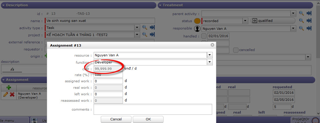 I have a question asked people to help fo resource cost. When I create and assign initial cost for employee A is 500.000VND / d. But when that resource assigned to the activity, only 100.000nvd / d. Thanks to everyone for helping why is there this difference?