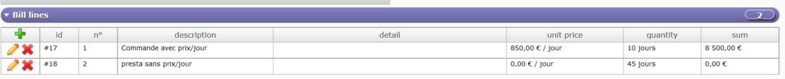 It would be find to have the possibility to create bill line with a price per day 0 € and the days appear correctly in project.
