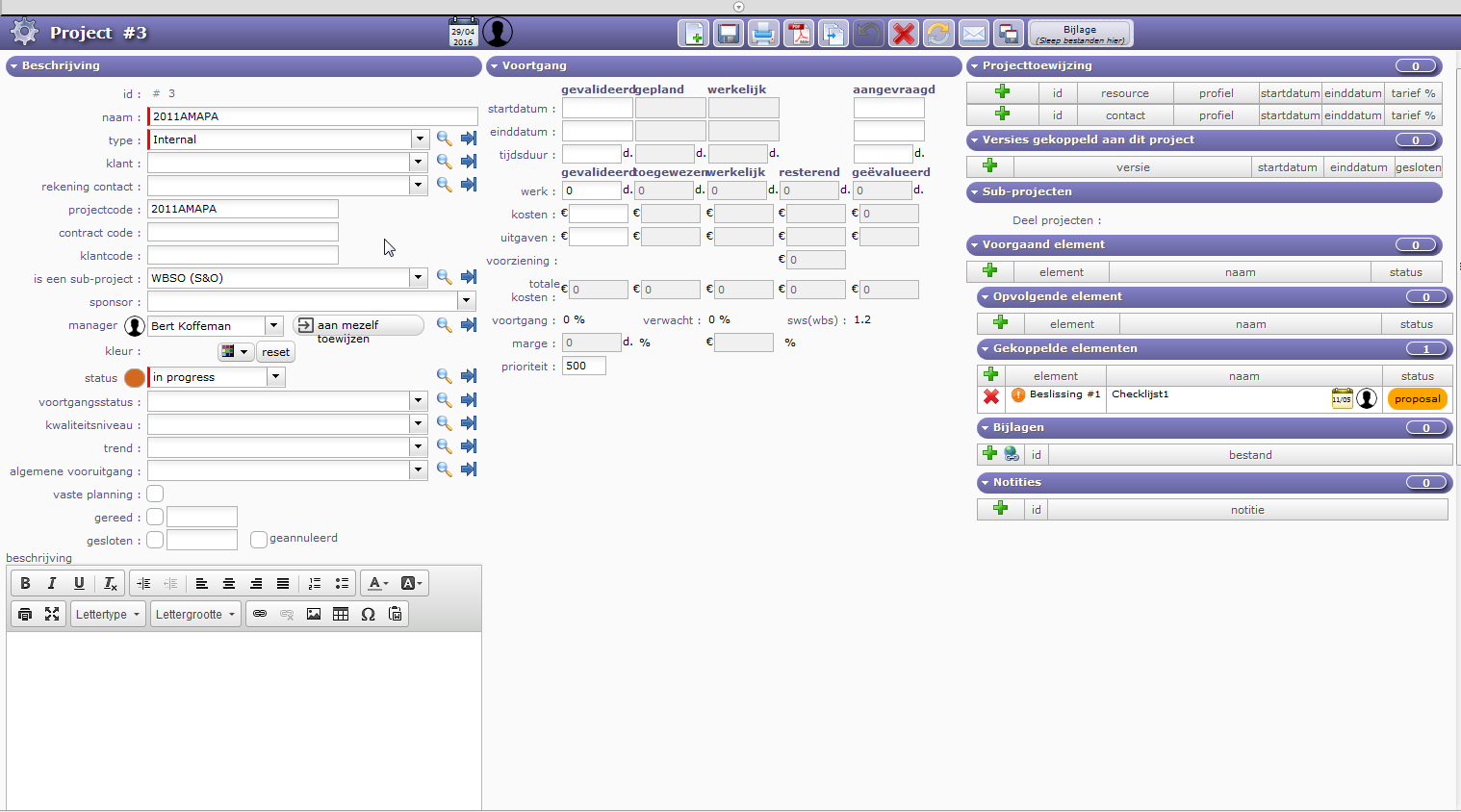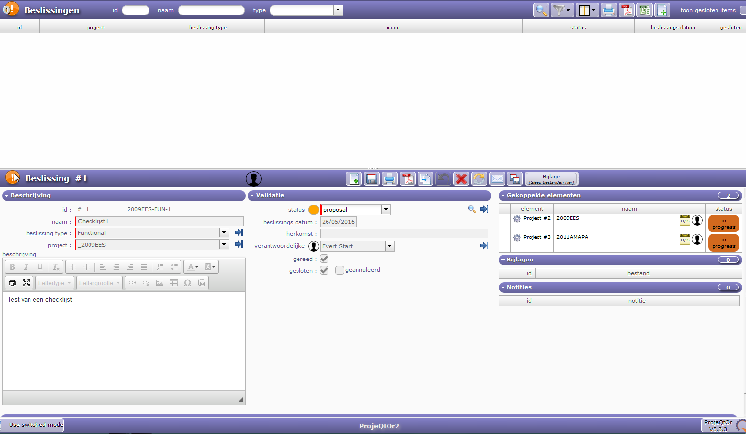 Here you can see that both Project#2 and Project#3 are linked to this "Beslissing" (Decision)
