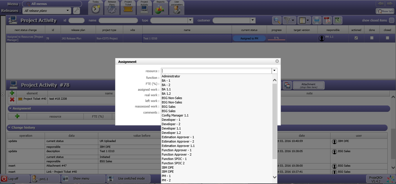 ProjeQtOr free project management software - Idle users are somehow being picked up in Resource / Assignment dropdowns - ProjeQtOr