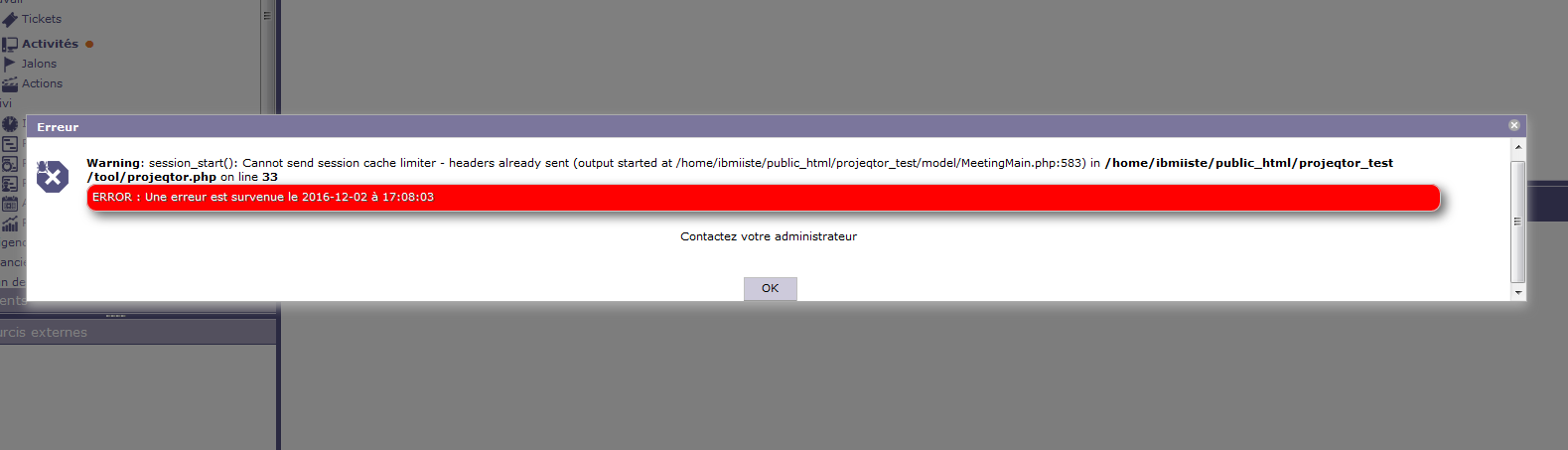 Warning: session_start(): Cannot send session cache limiter - headers already sent (output started at /home/ibmiiste/public_html/projeqtor_test/model/MeetingMain.php:583) in /home/ibmiiste/public_html/projeqtor_test/tool/projeqtor.php on line 33