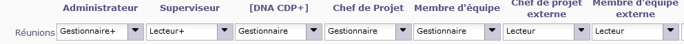 Un utilisateur "Membre d'équipe externe" ayant des droits uniquement "Lecteur" (visibilité des réunion des projets sur lesquel il est affecté)