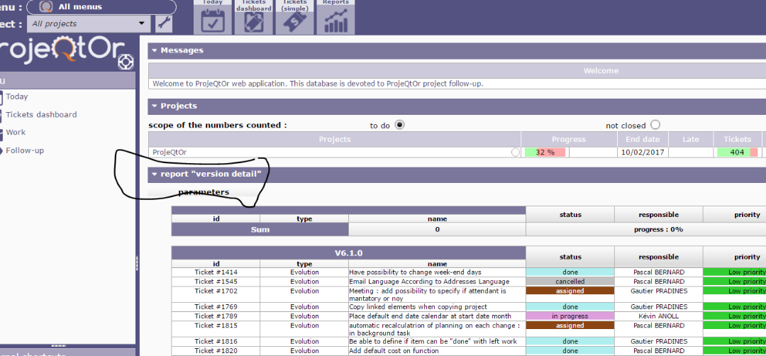 ProjeQtOr free project management software - report version detai ltoday - ProjeQtOr
