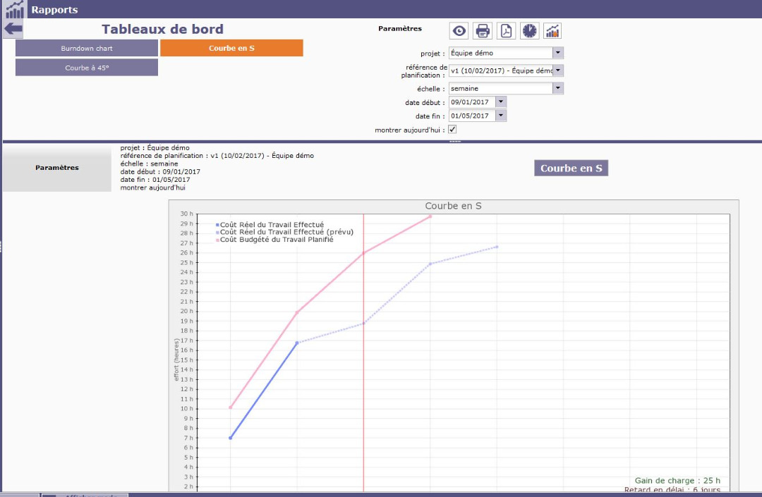 I have a mini project with about 10 task and 207 assigned hours ( seee screen capture) and when i produce the S curve , I see only 29 hours for the coût budgetiser du travail planifié (see s curve figure). Shouldn`t the 207 assigned hours be equal to the planned value ( coût budgetiser du travail planifié)? Am I missing something?