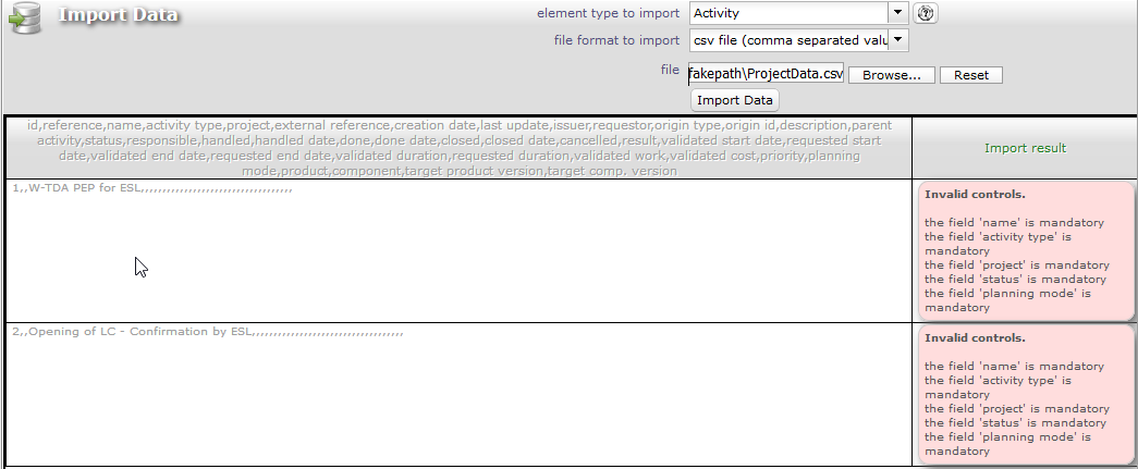 ProjeQtOr free project management software - ProjeQtor fails to import Activity data (as Excel or as CSV) - ProjeQtOr