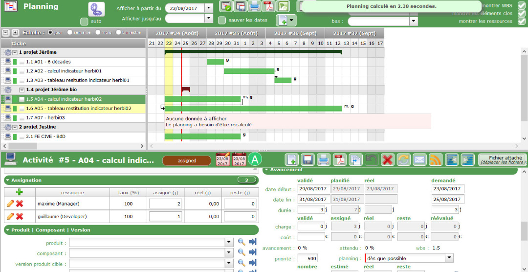 i had clicked on the button "calculate activities planning" and i havec this message.