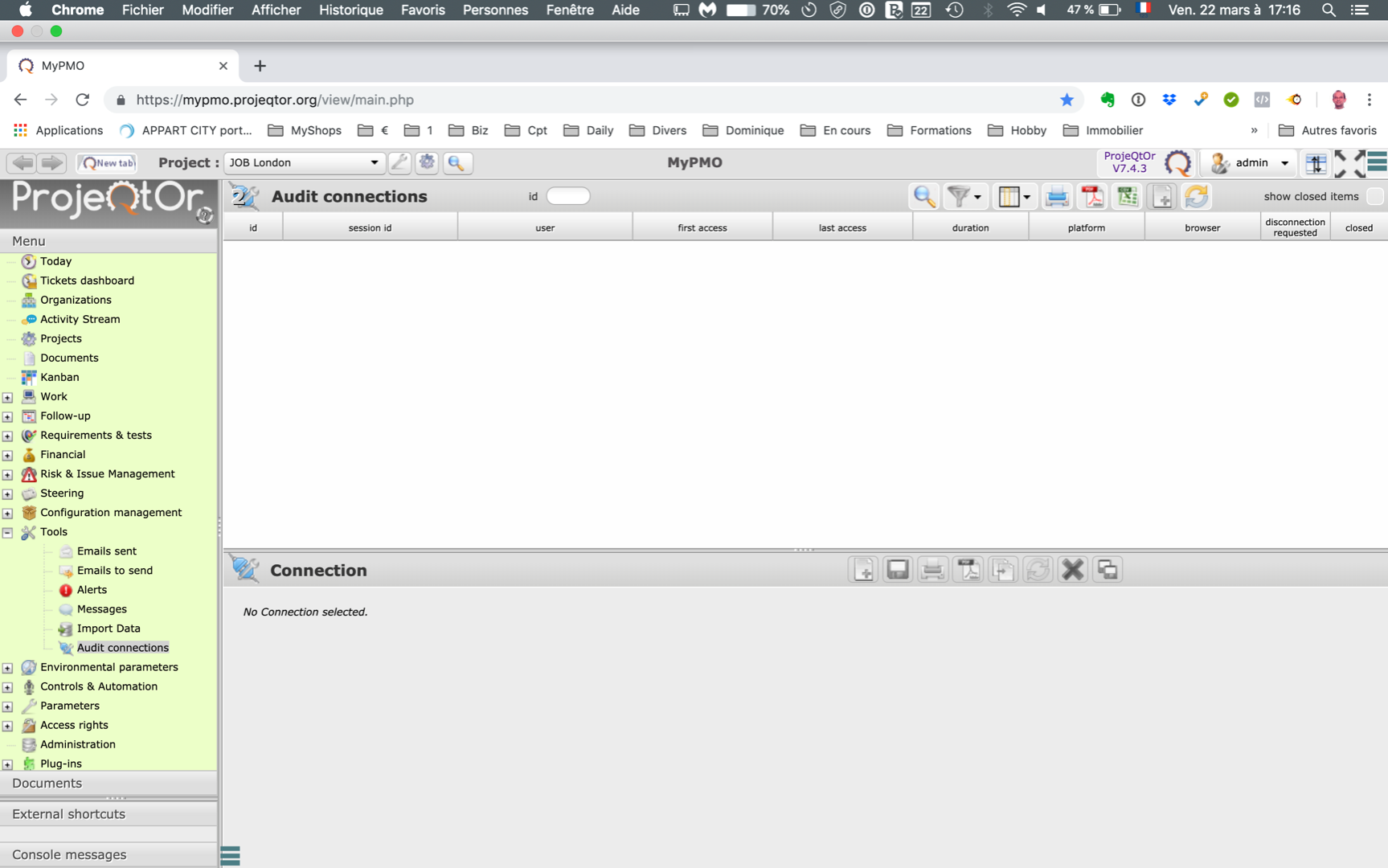 ProjeQtOr free project management software - Audit connections: no connexion appears - ProjeQtOr