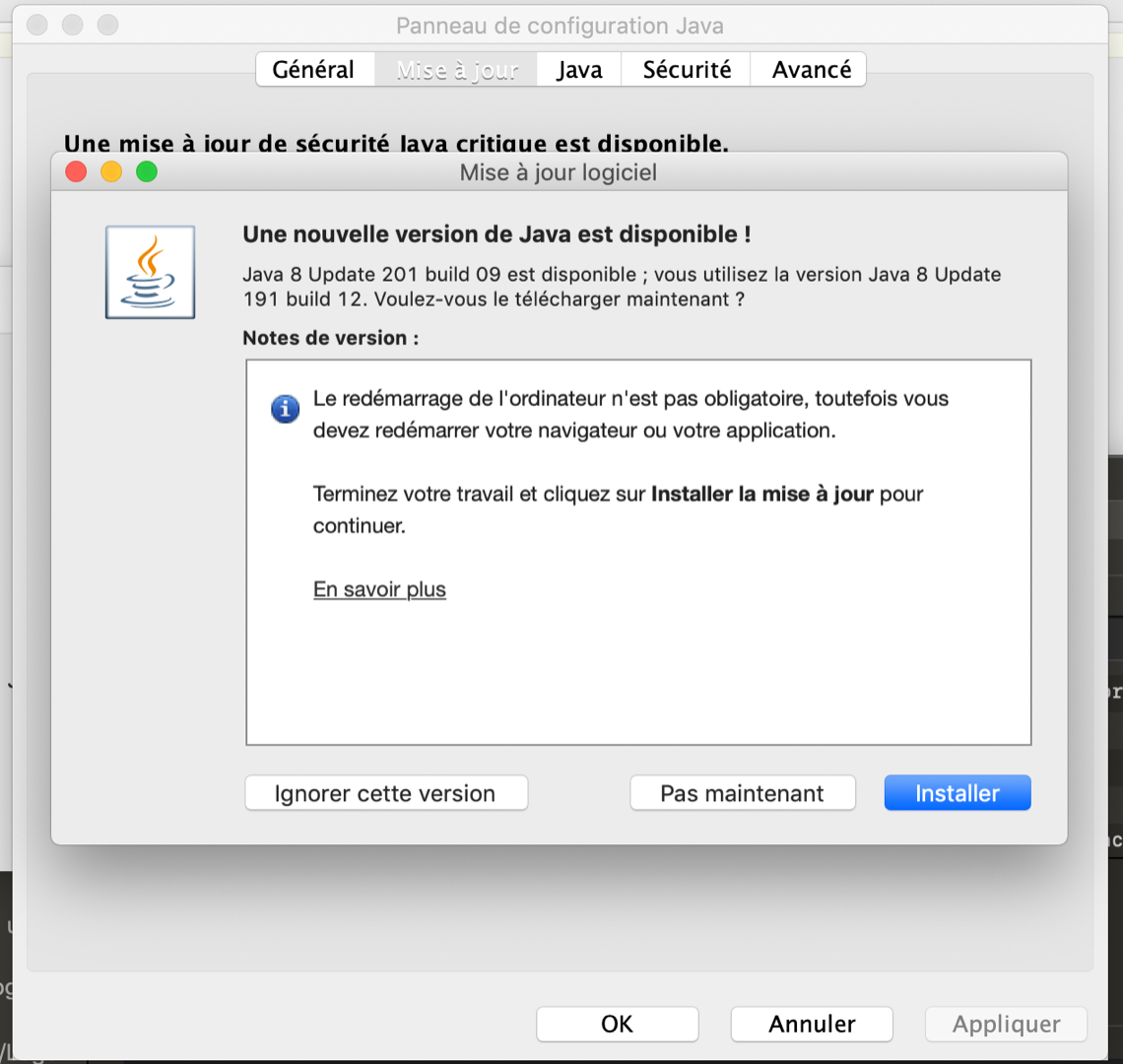 As I wanted to check everything, I have also updated the java version from Java 8 update 192 build 12 to Java 8 Update 201 Build 9.