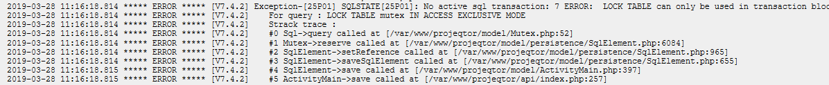 ProjeQtOr free project management software - LOCK TABLE error - ProjeQtOr
