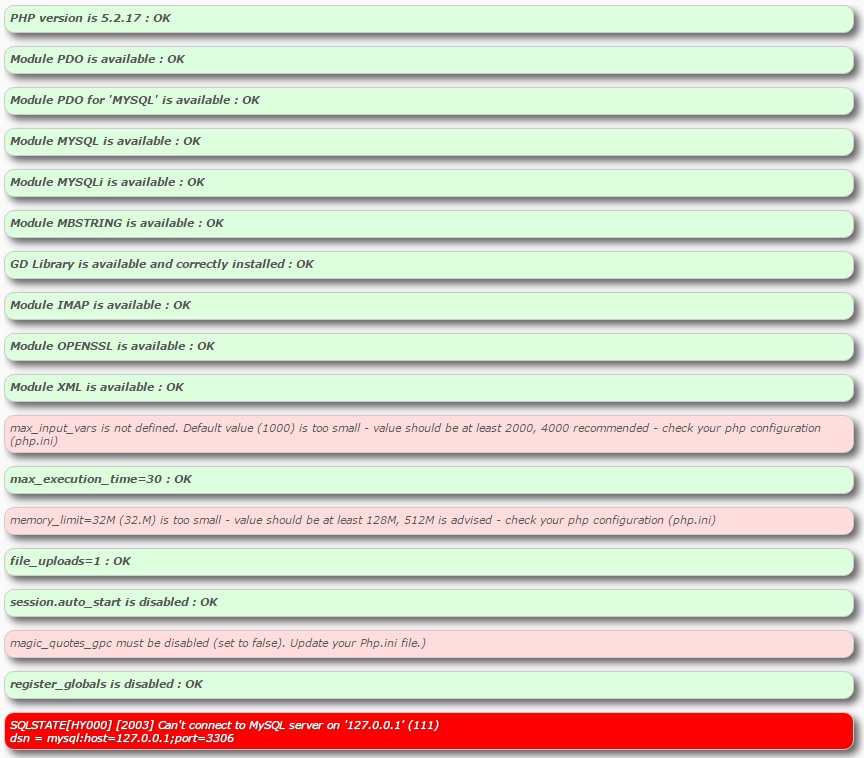Here's what I see now, a lot of OKs :woohoo: BUT ... a few that are not OK :oops: and I don't know what to do. Some mention the php.ini file but I cannot find that file anywhere.
