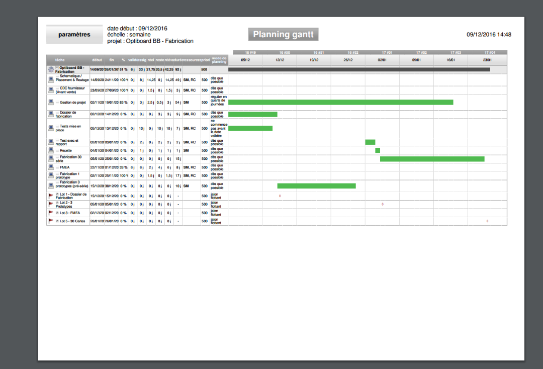 Generating Gant chart is a great technical challenge, and we got several ways to do it, and generate printed sheet and export as pdf.