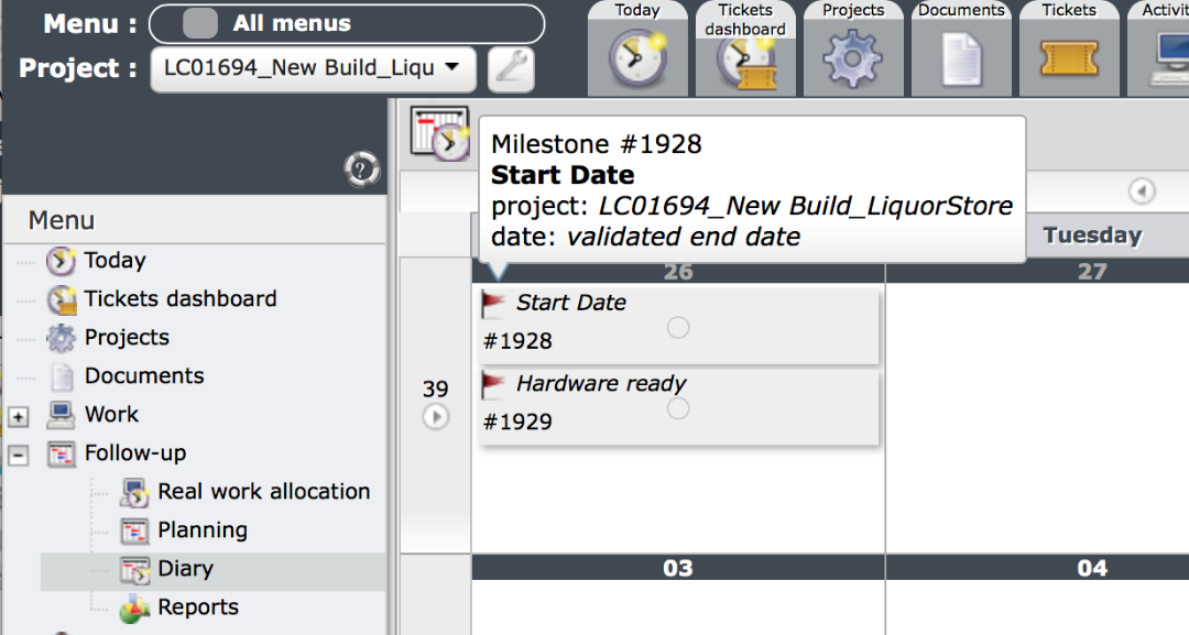 From the Diary view, when I select the milestone it takes me to the Milestone screen but it displays the error which I originally reported.