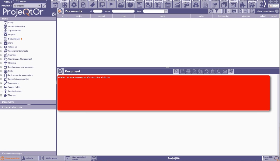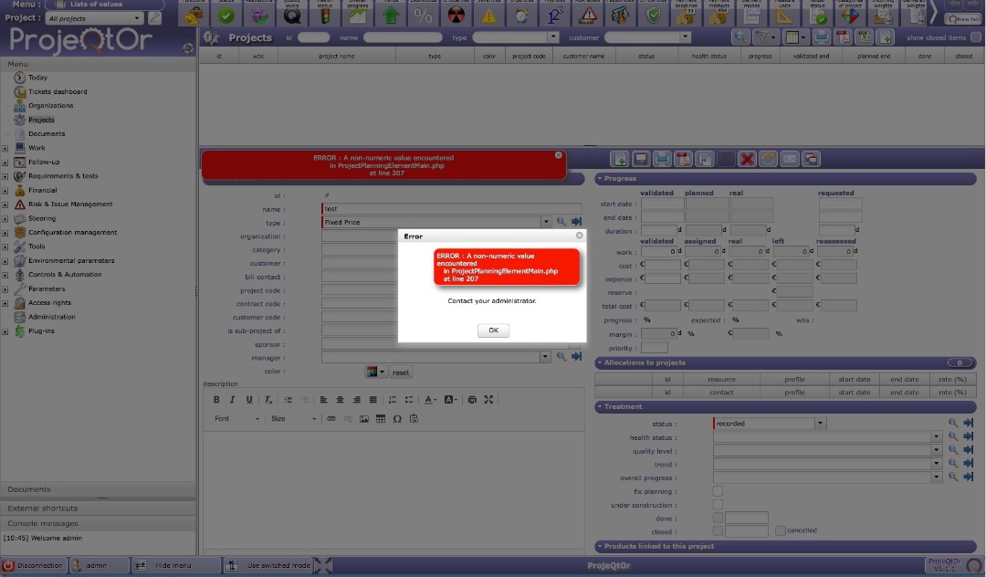 ProjeQtOr free project management software - [SOLVED] 6.1.1 Error creating any new item - ProjeQtOr