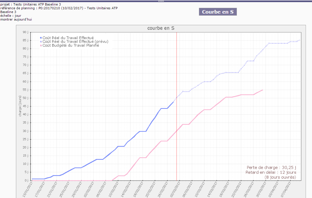 The S curve displays the "assigned" workload rather than the "reassessed" workload (cf. capture attached). There is an issue on the "Coût réel du travail effectué (prévu)" curve.