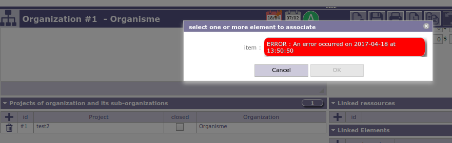 I get a error message when I try to add a project by "Projects of organization and its sub-organizations" section.
