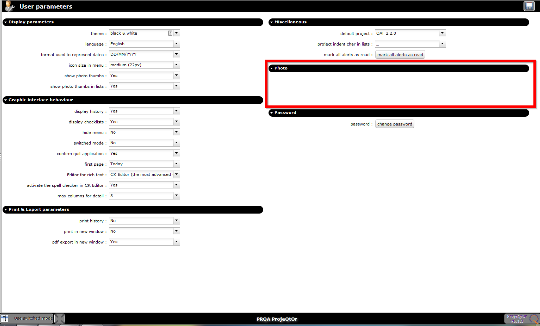 ProjeQtOr free project management software - Unable to set profile picture - ProjeQtOr
