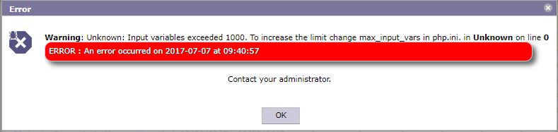 'Unknown: Input variables exceeded 1000. To increase the limit change max_input_vars in php.ini. in Unknown on line 0
