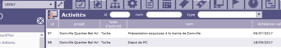 when i display planing view , if i filter "with the main filter on top left screen" on main project VEFA i obtain that :
