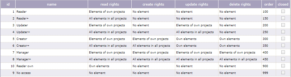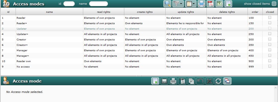 Here is defaut access modes definition