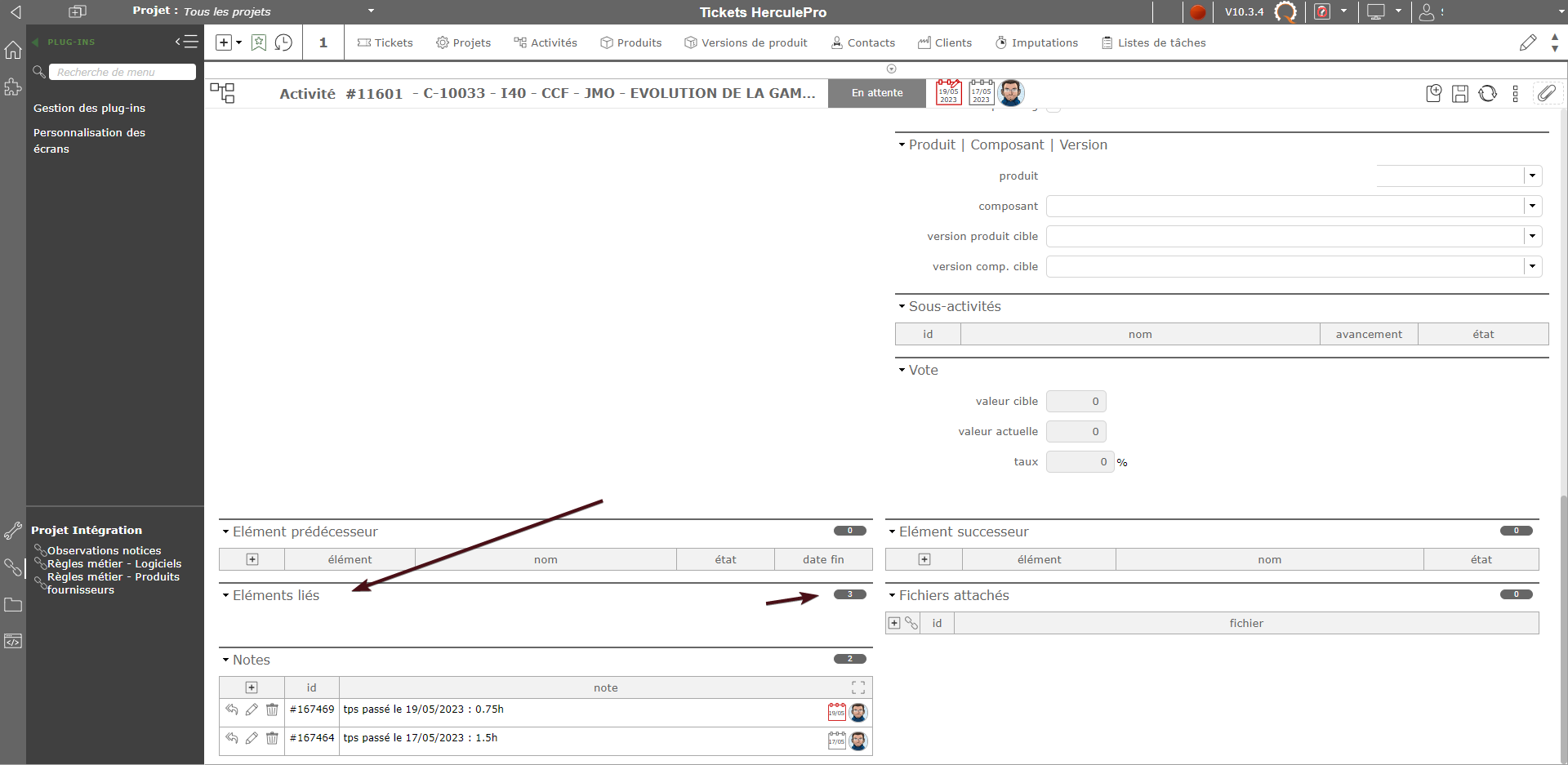"Ticket" module: There is no longer a linked element PJ3