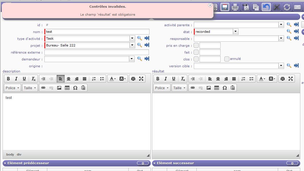 We have a problem when we create activities, milestones and tickets, ProjeWtor keeps asking for result (you can see it in the picture attached). It's a new bug we didnt have it last week.