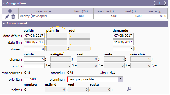 I'm creating an activity, and when I assign the workload to a ressource, I would expect to get starting and ending planned date to be calculated automatically.