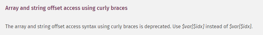 2020-08-28 17:59:02.443 ***** ERROR ***** [V8.5.3] cause = Array and string offset access syntax with curly braces is deprecated